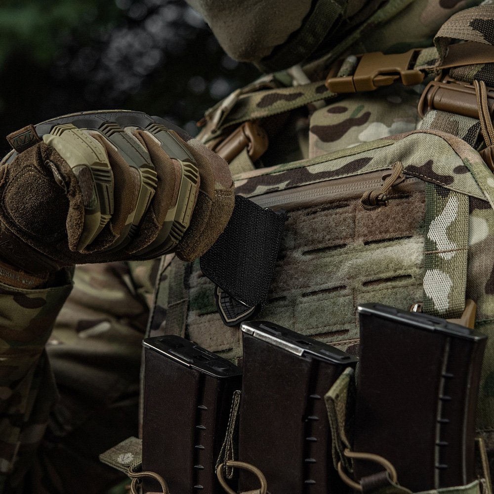 It attaches to any compatible Velcro panel on clothing or equipment.