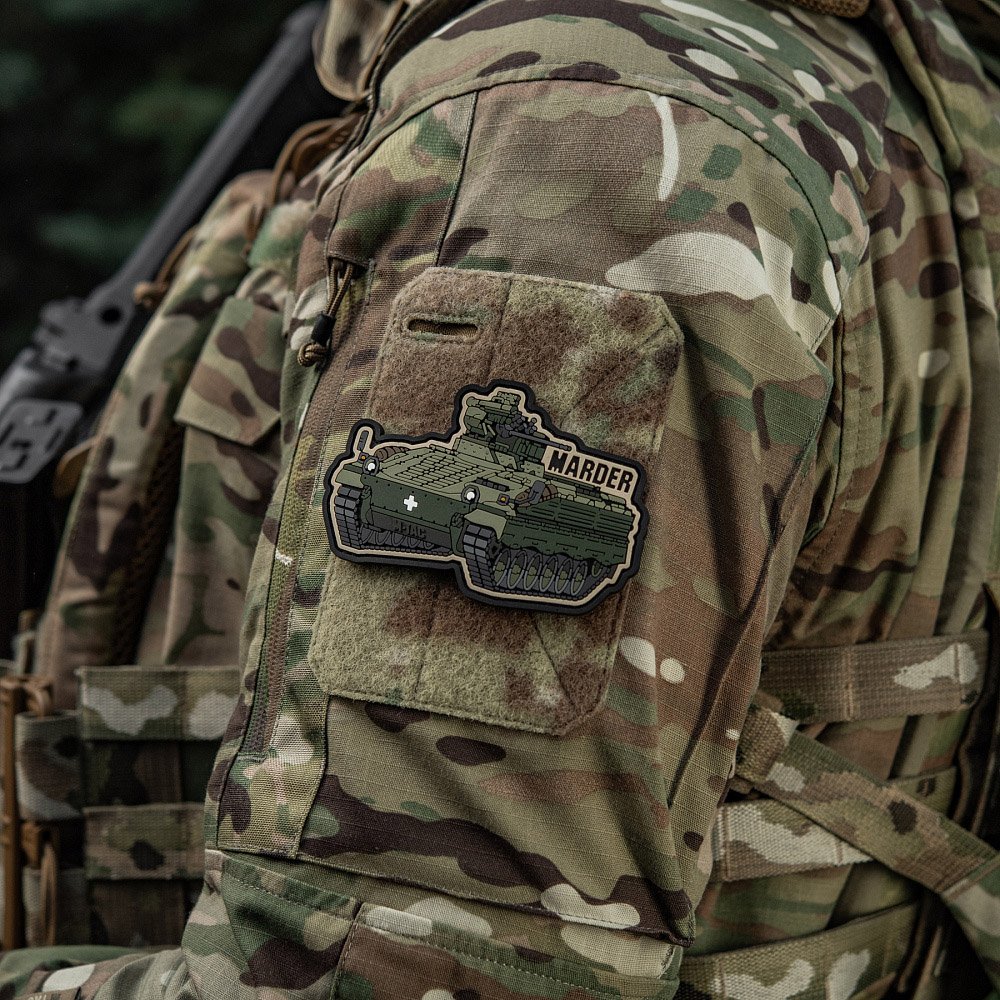 High-detail Marder infantry fighting vehicle patch crafted from durable 3D PVC with Velcro backing. Perfect for gear customization, collectors, and tactical setups.